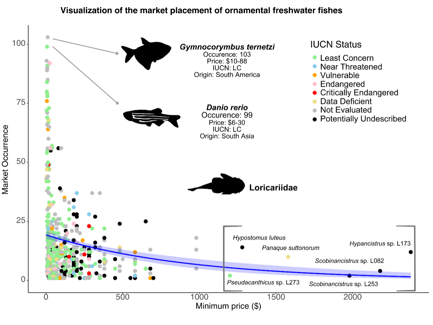 Over the past two centuries, Hong Kong has transformed from a fishing port into a global metropolis, profoundly impacting its biodiversity. The city has experienced intense aquaculture phases and now centers on the wildlife trade. However, the local fish assemblage remains understudied. Before starting my PhD, I compiled records of non-native fish in Hong Kong using field surveys, citizen science data, and literature reviews, identifying 95 species and 5 hybrids—surpassing the ~70 native freshwater species. More than half of these non-native species have established breeding populations, indicating significant disruption of Hong Kong’s freshwater ecosystems. Building on this, my graduate advisee Samuel C.L. Ho has led research on quantifying the ornamental fish trade, which is the primary invasion pathway in Hong Kong. Over 500 ornamental fish species have been recorded, with high invasion risk to local streams and reservoirs. Alarmingly, 16% of these species are suspected to be unassessed, and 38% are either not evaluated or listed as Data Deficient by the IUCN. The wildlife trade and invasive species problem are deeply connected. As a major international trading hub, Hong Kong is well positioned to lead by implementing origin disclosure laws and incentivizing sustainably sourced or captive-bred species in the trade.